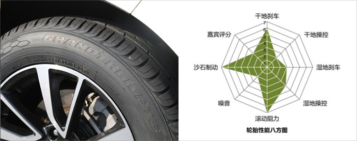 首先,在干濕地繞樁測試中,GRANDTREK PT3的濕地操控極限稍優(yōu)于干地操控極限,胎面上四條縱向較粗的溝槽和繁多的橫向溝紋保證了良好的排水性能。其次,在砂石路面剎車測試中,表現(xiàn)同樣優(yōu)秀。最為突出的是,得益于SUV專用低發(fā)熱高密度橡膠配方,GRANDTREK PT3的滾動距離贏得全場第一,在節(jié)省燃油方面性能亮眼。