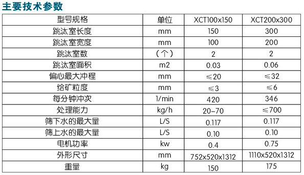 XCT型隔膜式跳汰機用于重力選礦,重力選礦是基于礦石的比重不同,在介質(zhì)中沉降速度亦異,利用礦物重量上的差別,而完成礦;旌衔锏姆謱舆x別工作。本產(chǎn)品由原地礦部唯一指定企業(yè)生產(chǎn),執(zhí)行行業(yè)標(biāo)準(zhǔn)。  隔膜式跳汰機適于選別黑色和有色金屬、化學(xué)、建筑等方面的實驗研究之用。